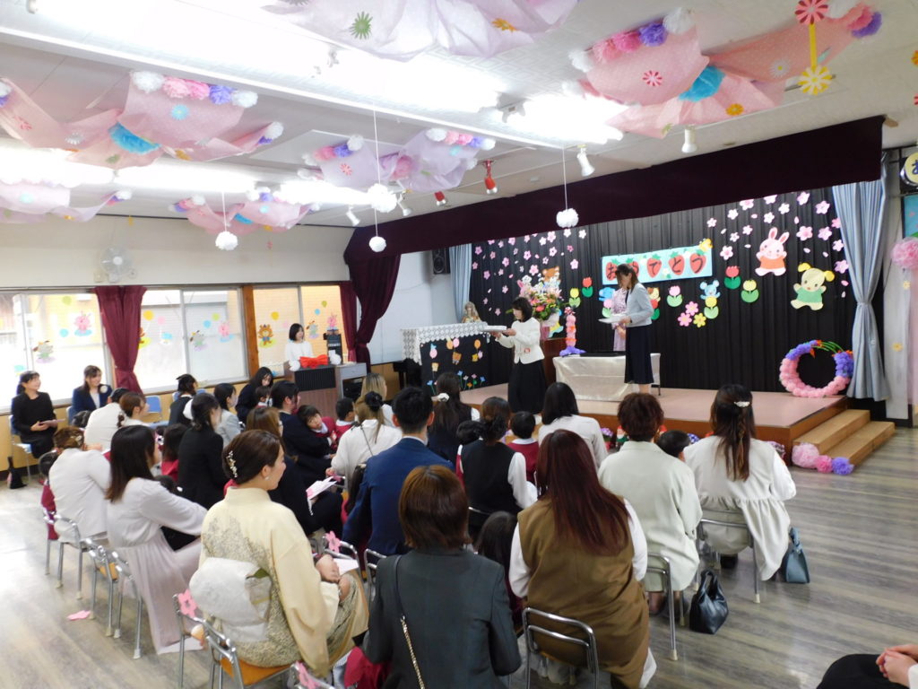 ご入園おめでとうございます!今年も元気いっぱい、新しいお友だちが入園しました。入園式では担任の先生がお名前を呼ぶと、かわいいお返事も聞かせてくれました。これから2年間・3年間よろしくお願いいたします。楽しい思い出、たくさん作ろうね!